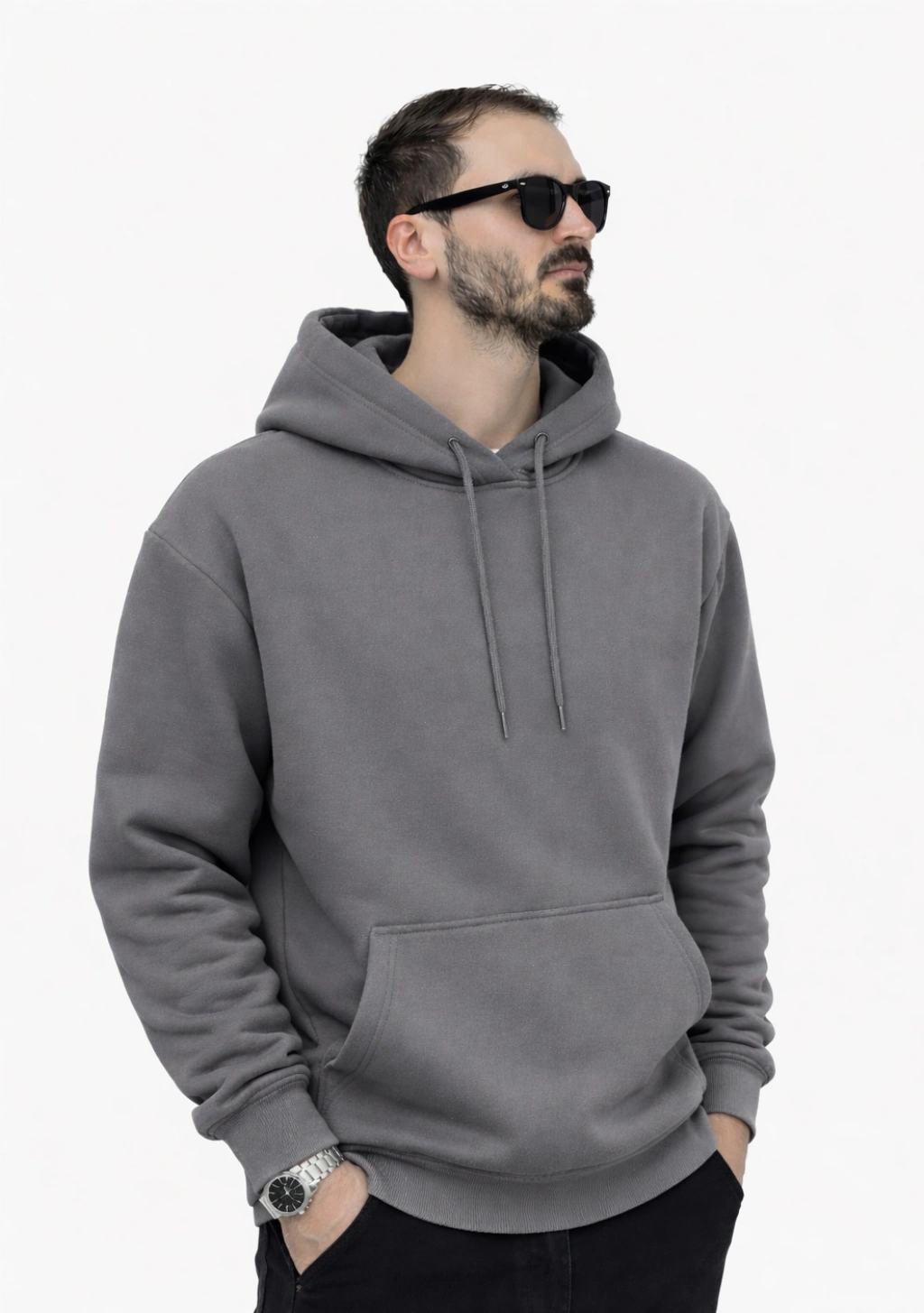 Antrasit Gri Premium 3 İplik Şardonlu Kumaş Kapşonlu Sweat