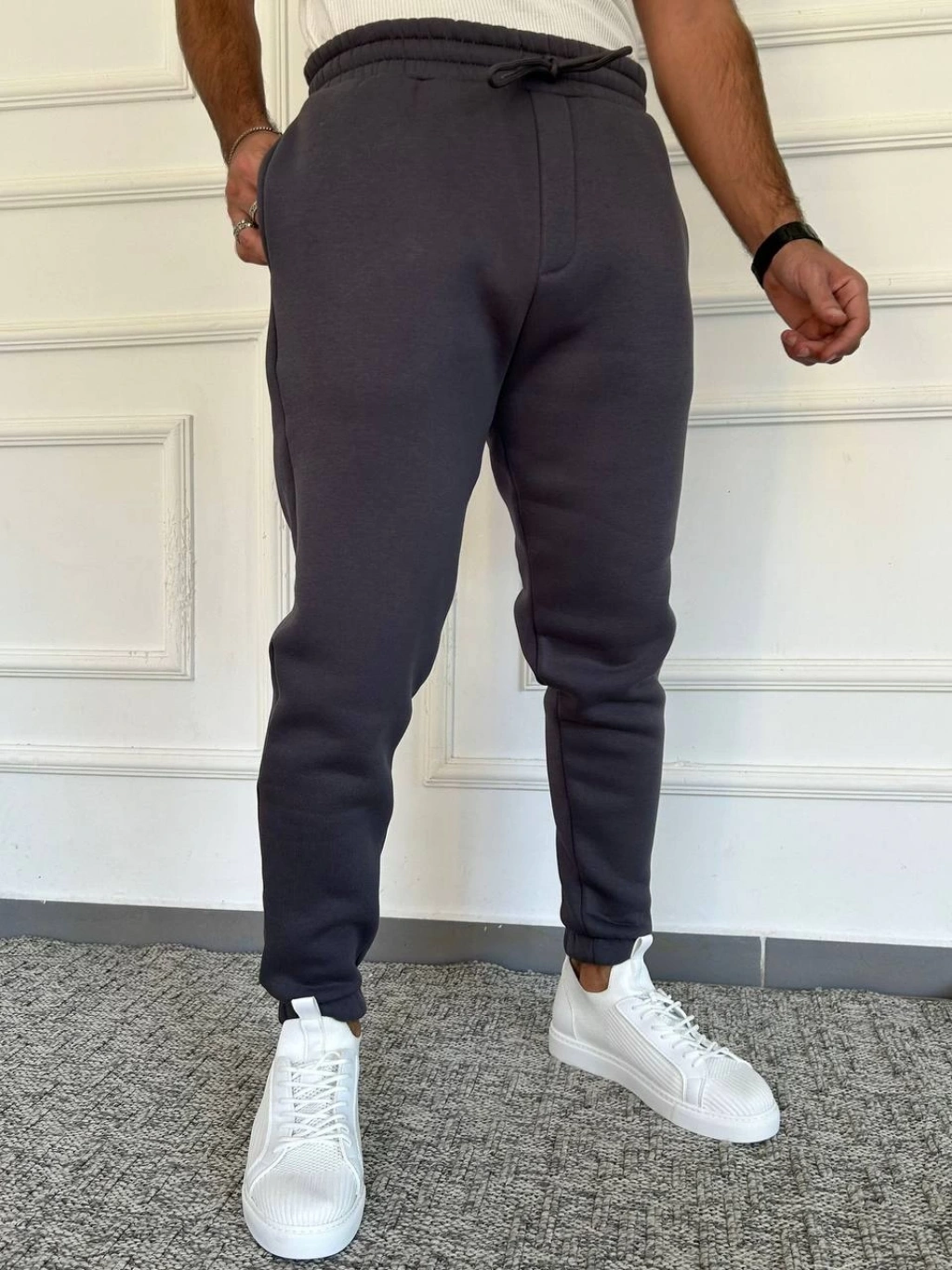 Antrasit Gri Premium 3 İplik Şardonlu Yüksek Kalite Lastik Paça Eşofman Altı