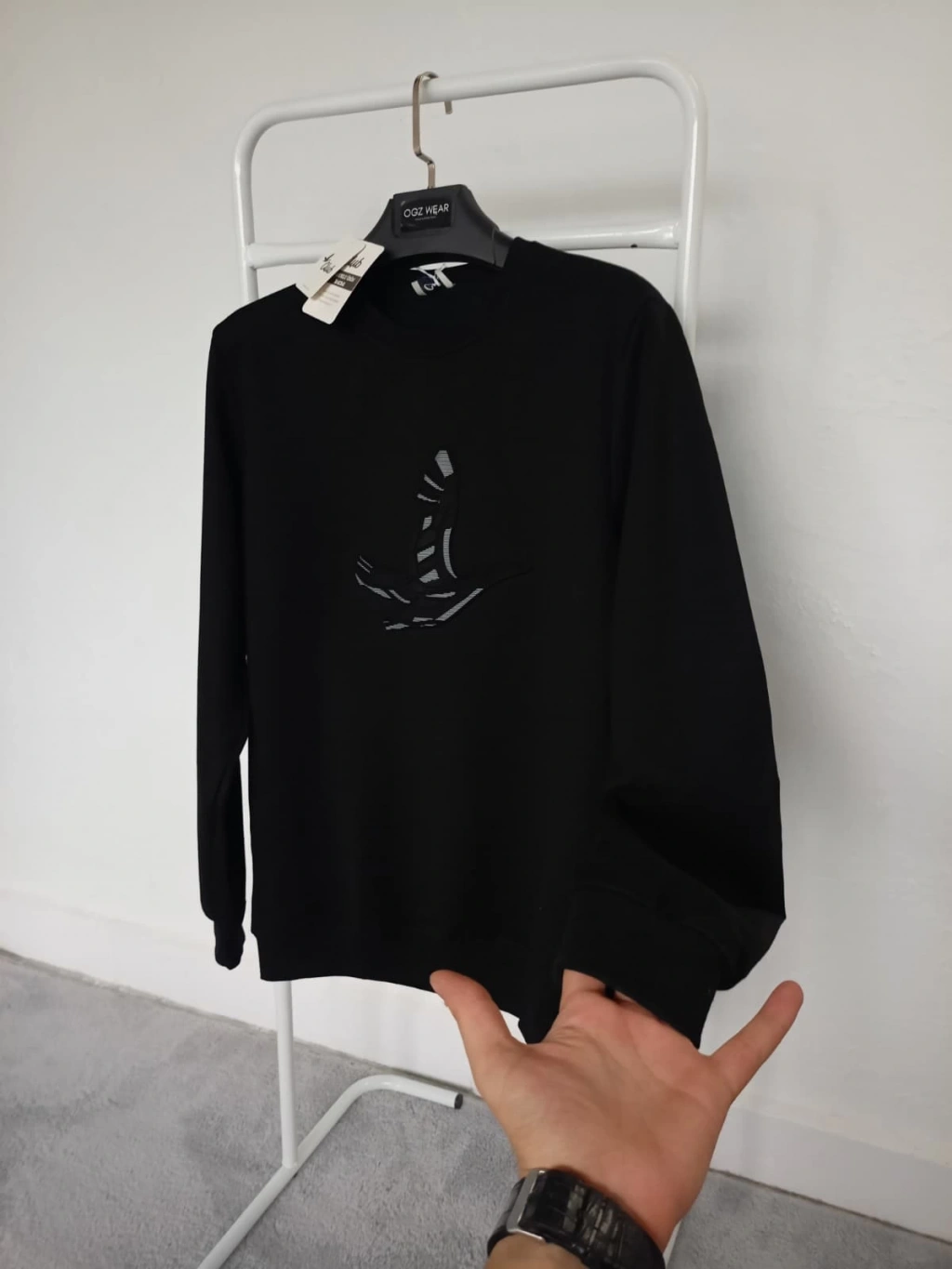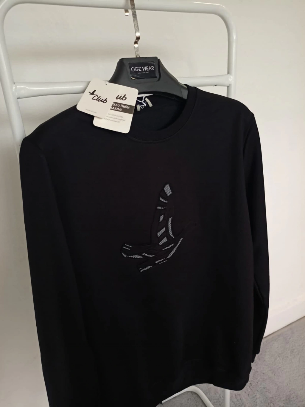 B.Club Siyah Premium %100 Pamuklu Kumaş Uzun Kollu Sweat