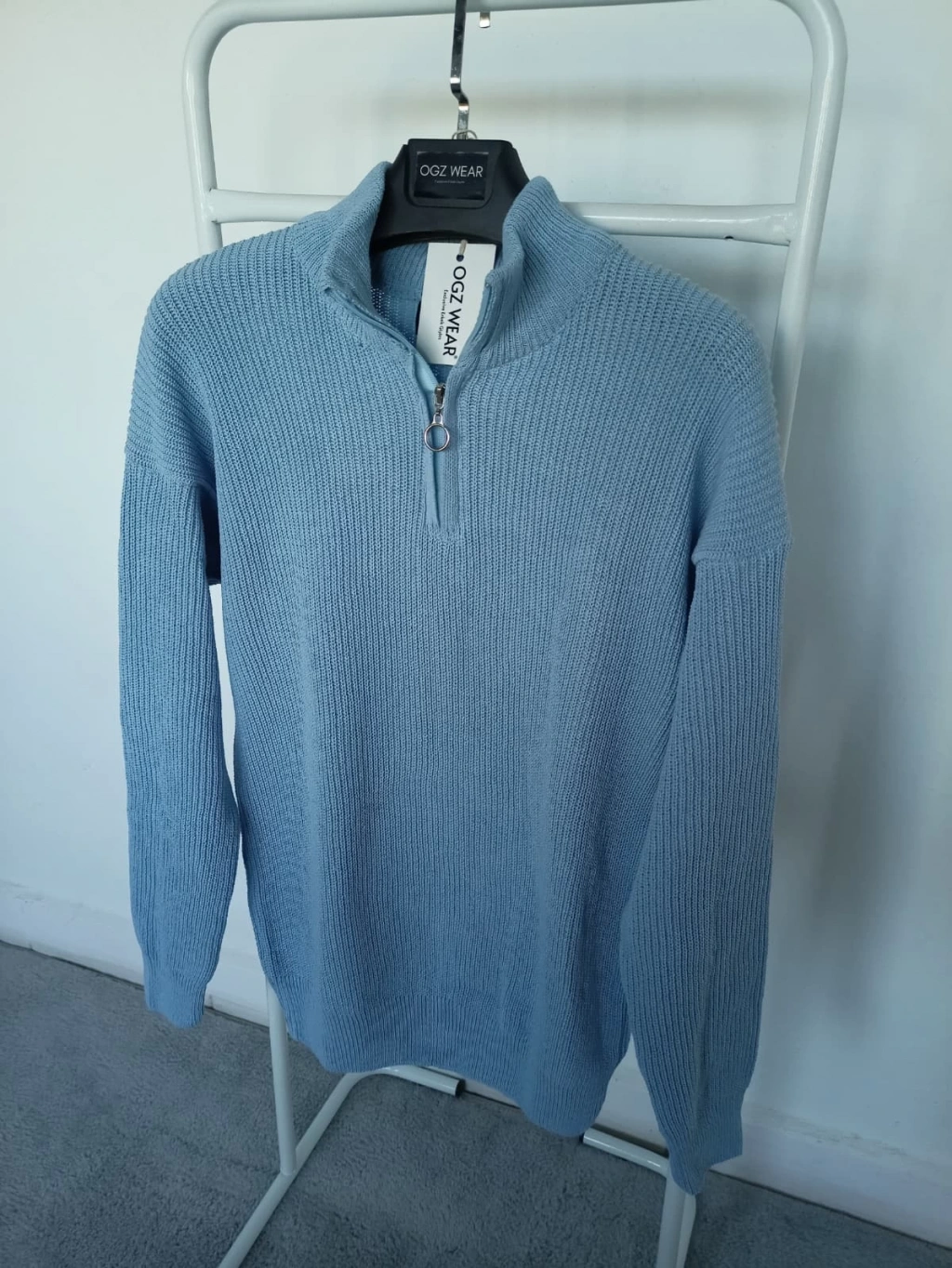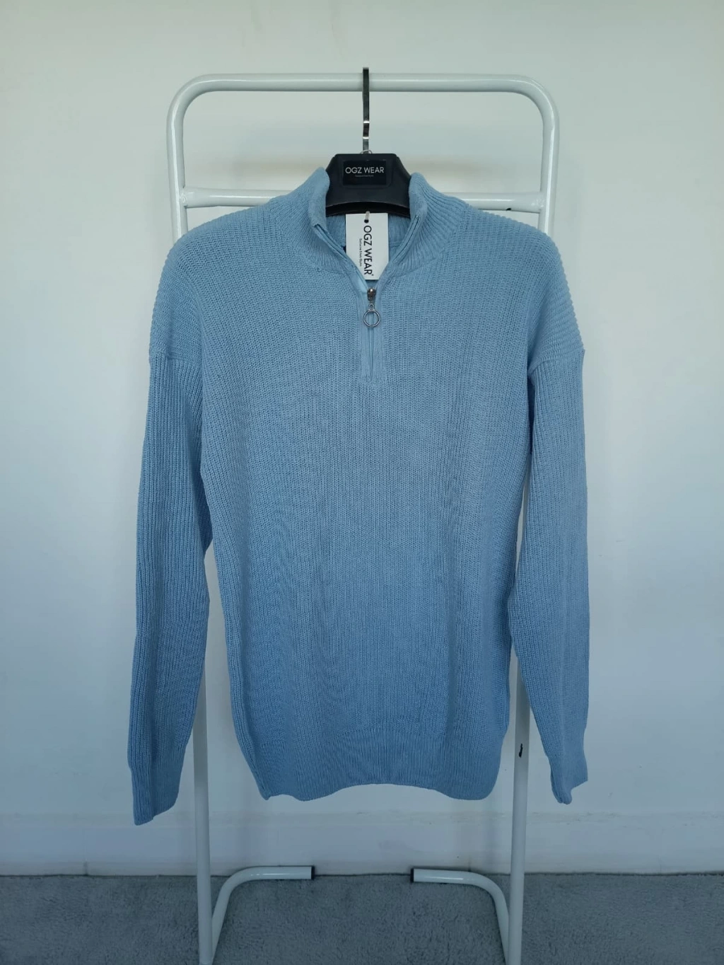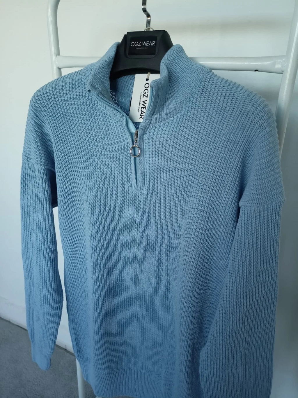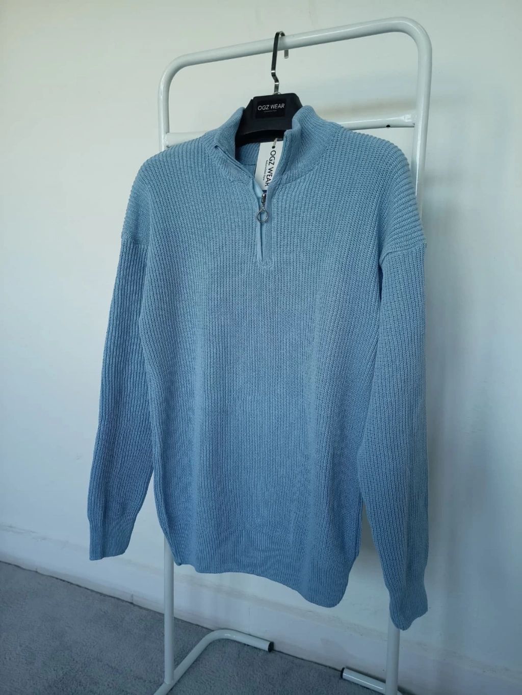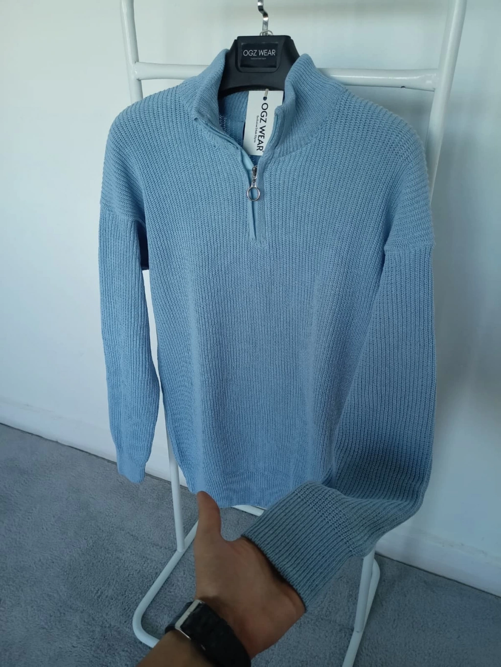 Bebe Mavi Selanik Örgü Yarım Femuar Detaylı Uzun Kollu Triko