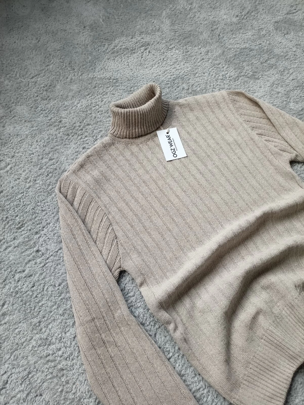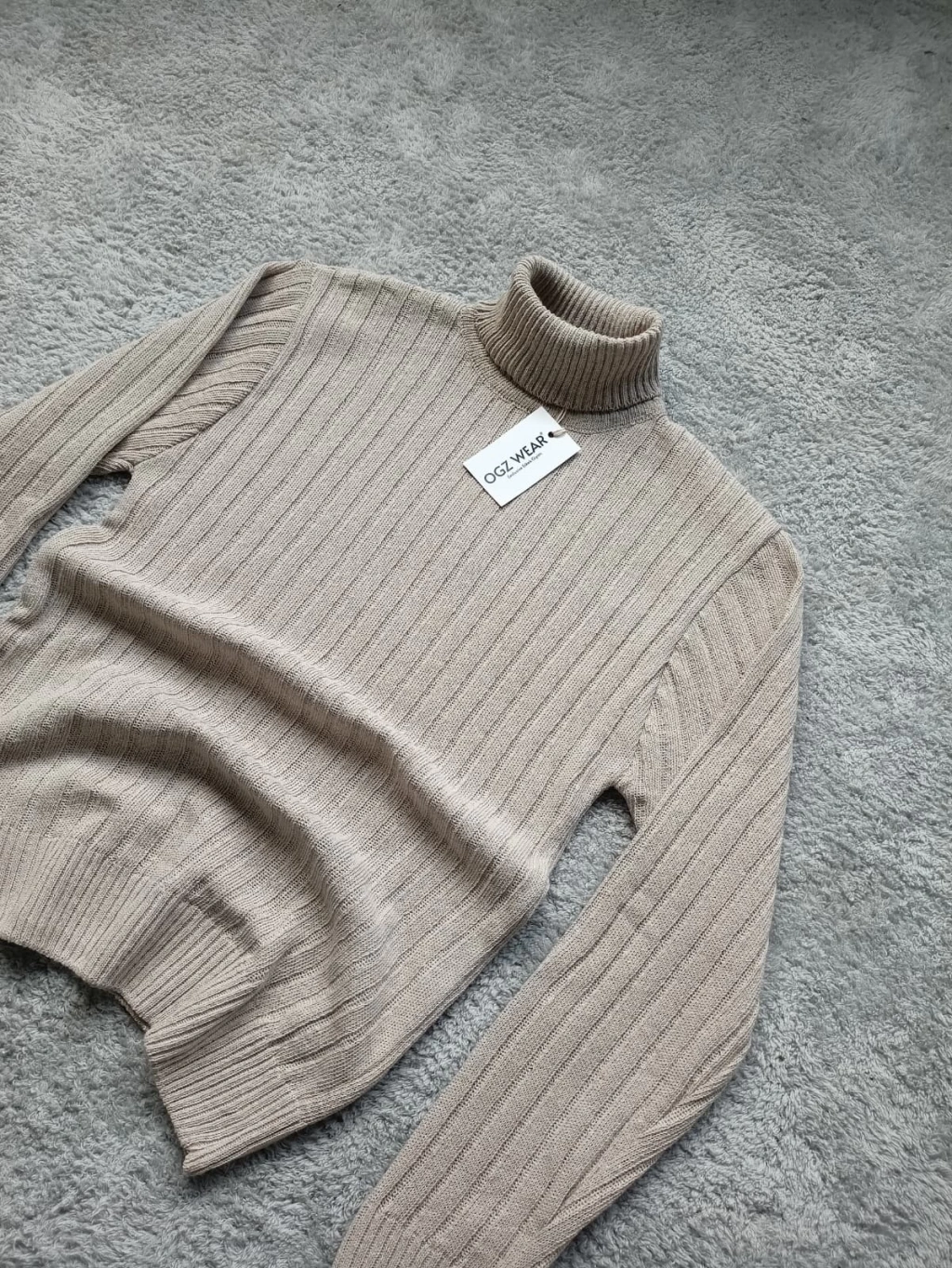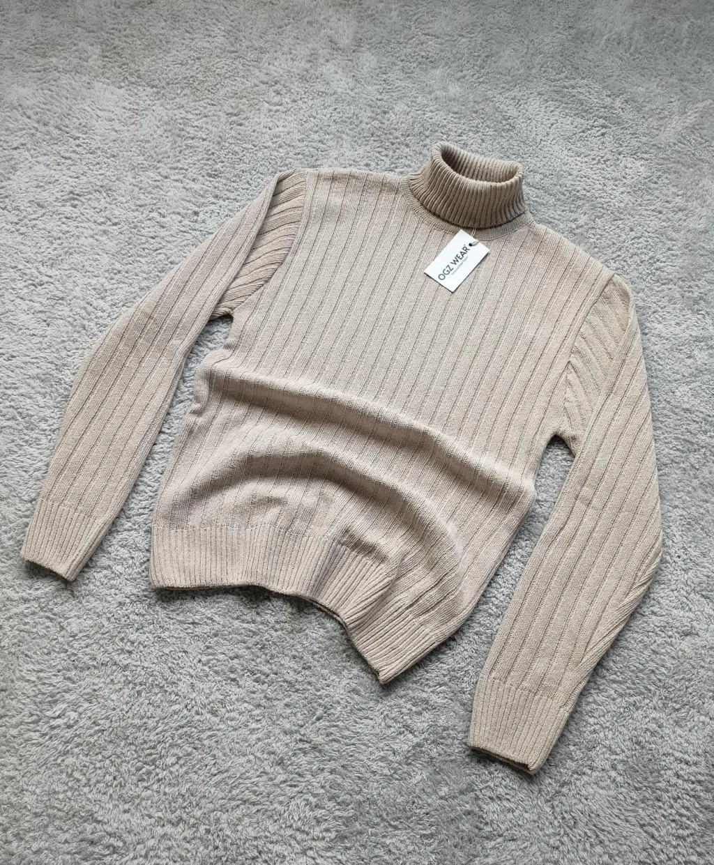 Bej Balıkçı Yaka Preimum Pamuklu Triko Kazak