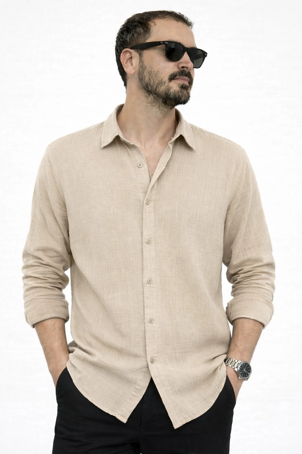 RENK: Bej KUMAŞ: Müslin Keten BEDEN: S-M-L-XL-2XL KALIP: Rahat Kalıp