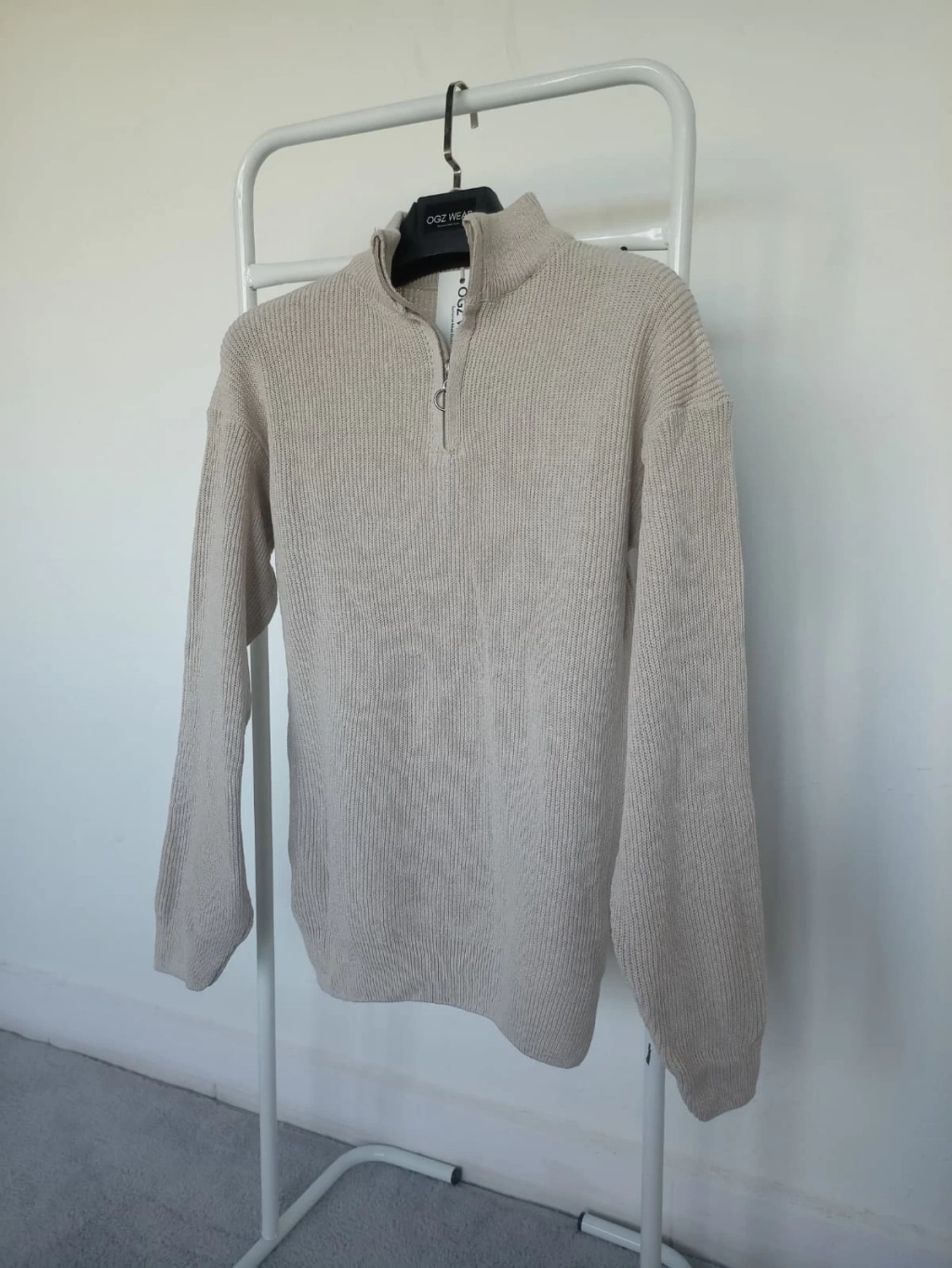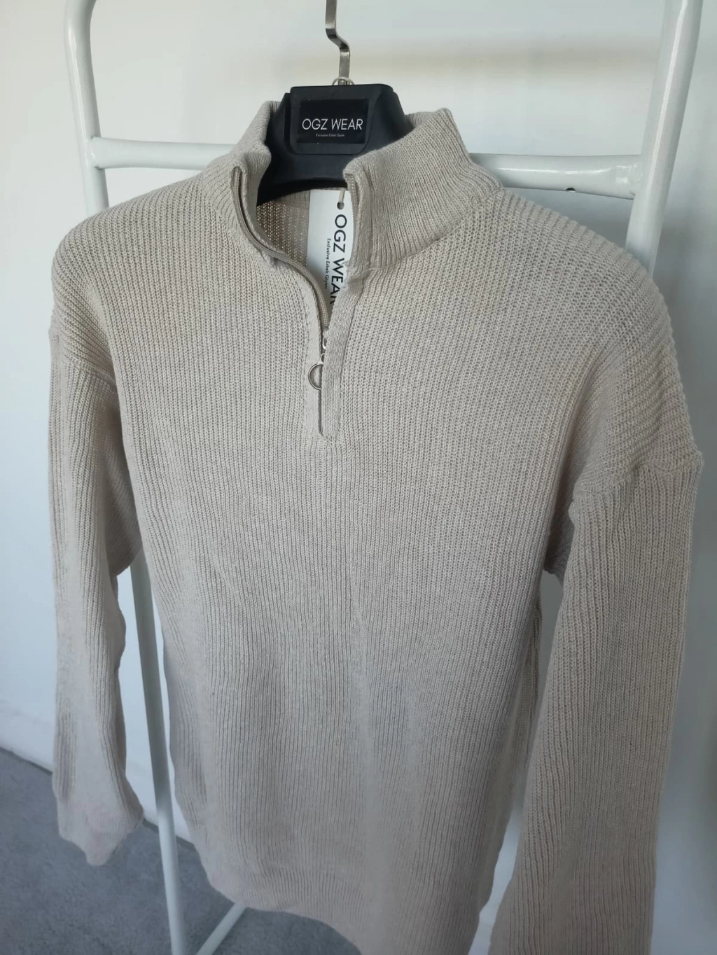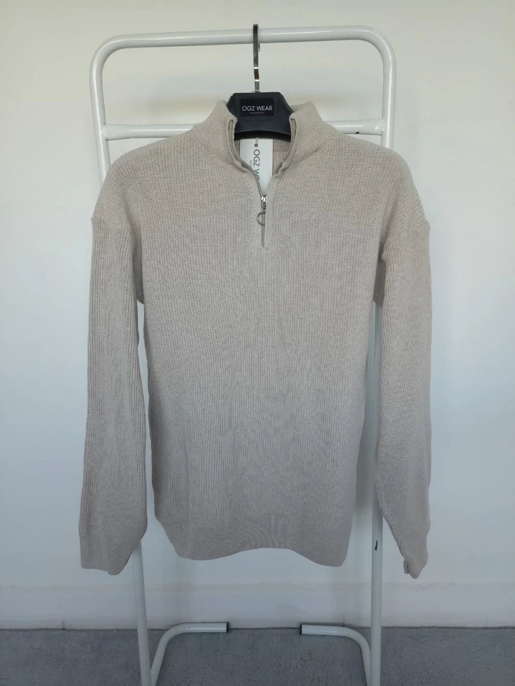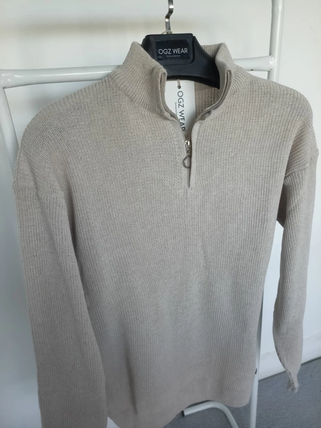 Bej Balıkçı Yaka Preimum Pamuklu Triko Kazak