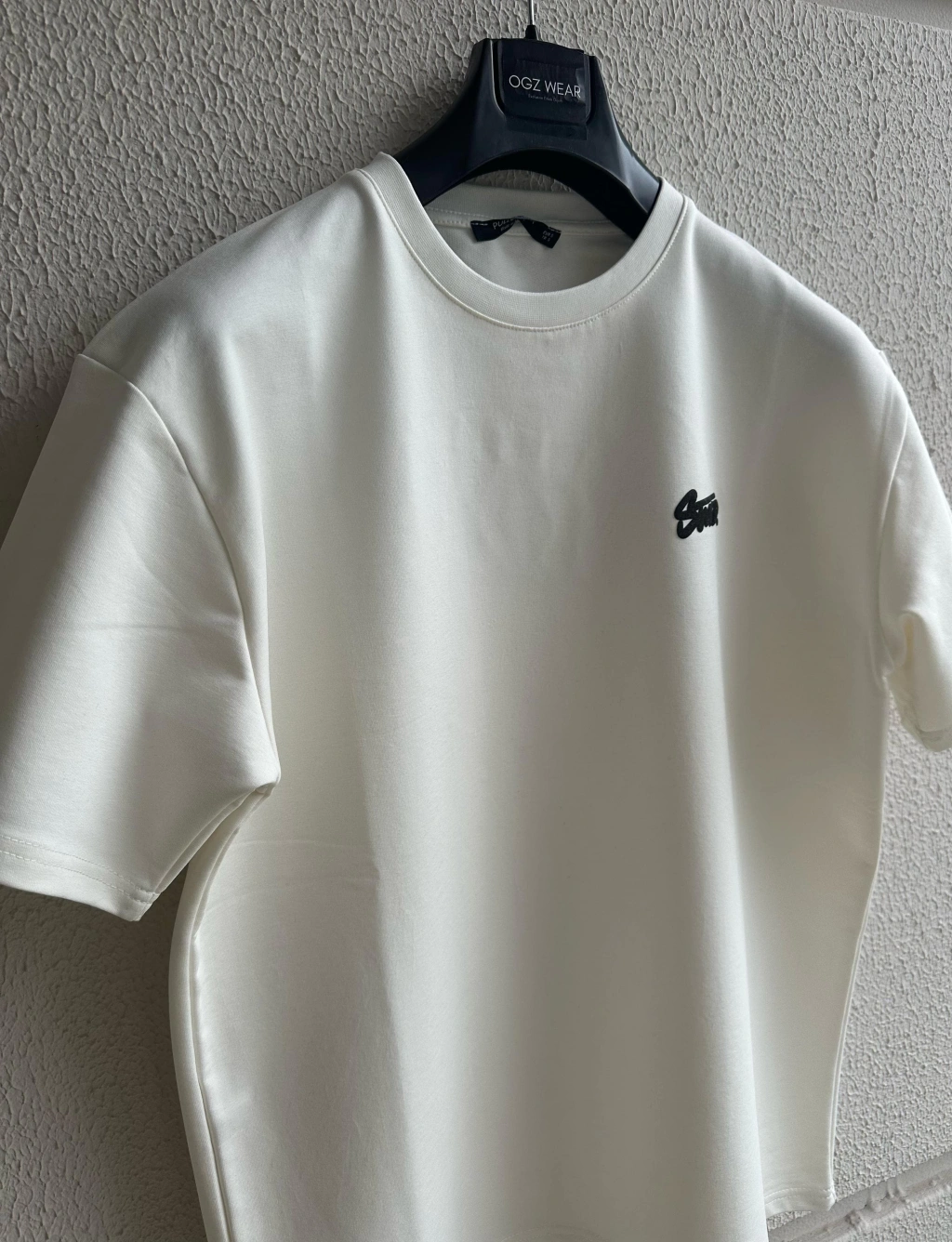 Beyaz Kabartma Baskılı Marka Premium Yüksek Kalite Oversize T-Shirt