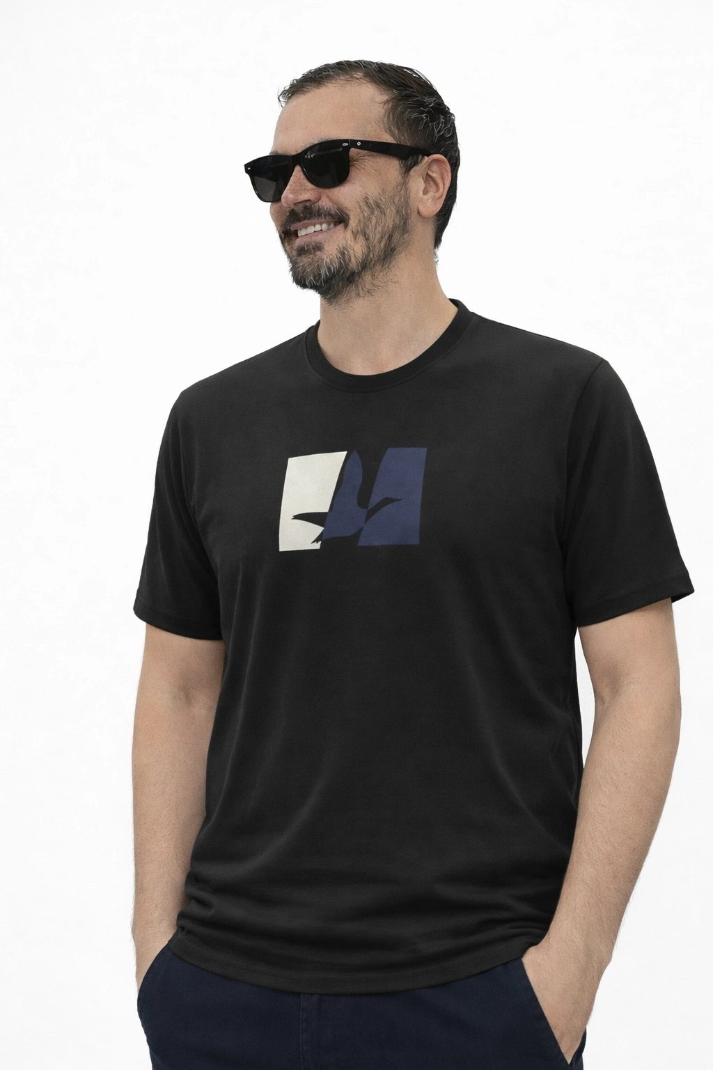 Beyaz Siyah Cep Detaylı %100 Pamuklu Kısa Kollu Tişört