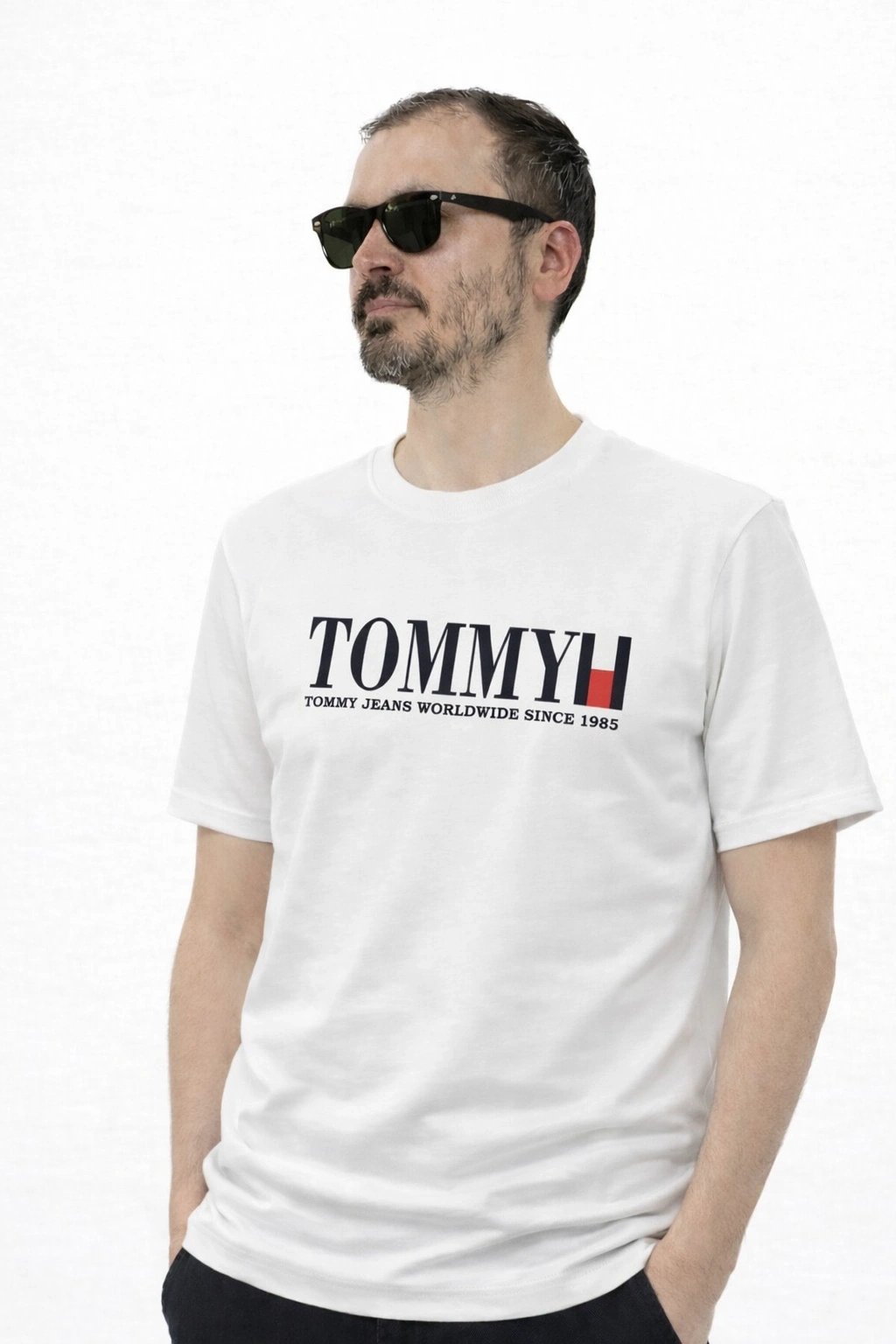 Beyaz T.Hilfiger Marka %100 Pamuklu Kısa Kollu Tişört