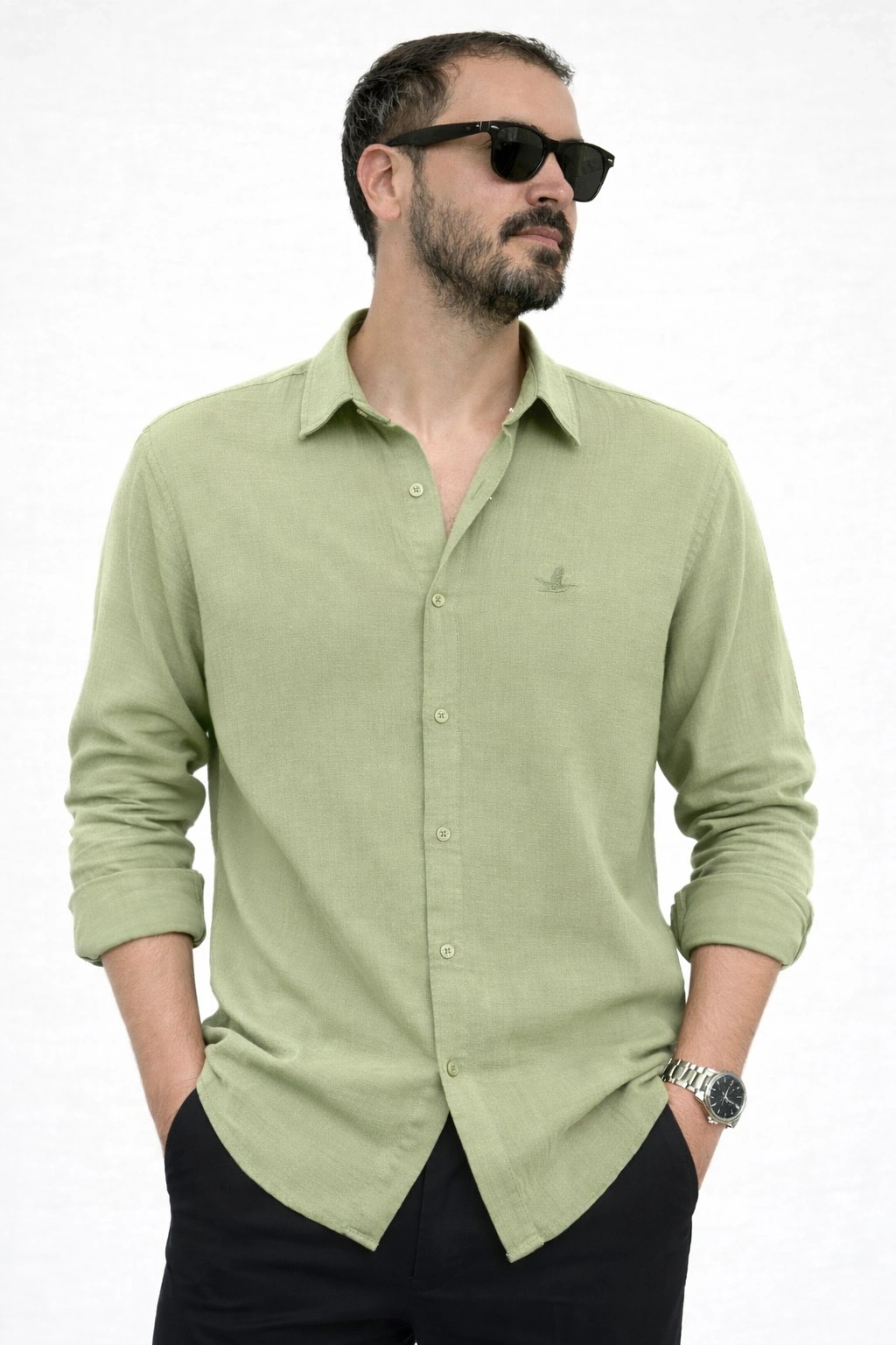 RENK: Fıstık Yeşili KUMAŞ: Müslin Keten BEDEN: S-M-L-XL-2XL KALIP: Rahat Kalıp