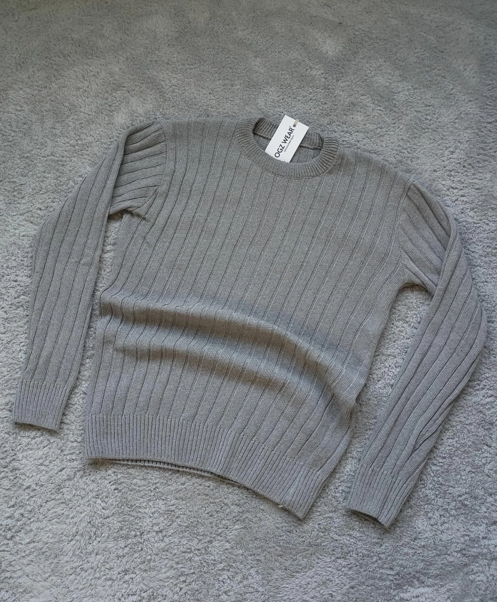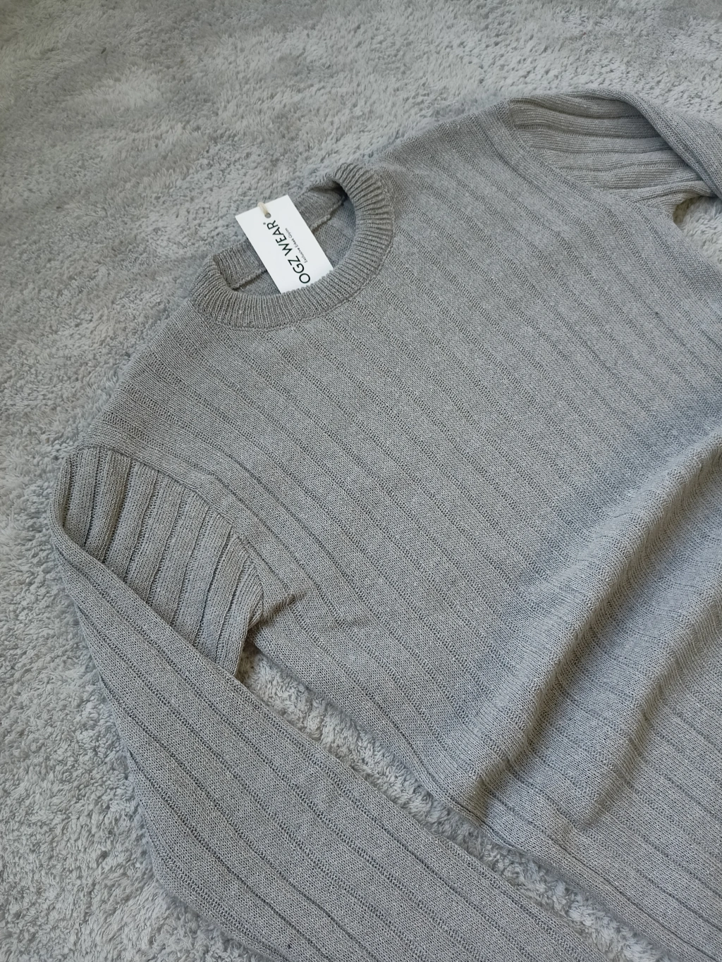 Gri Bisiklet Yaka Premiuım Pamuklu Triko Kazak