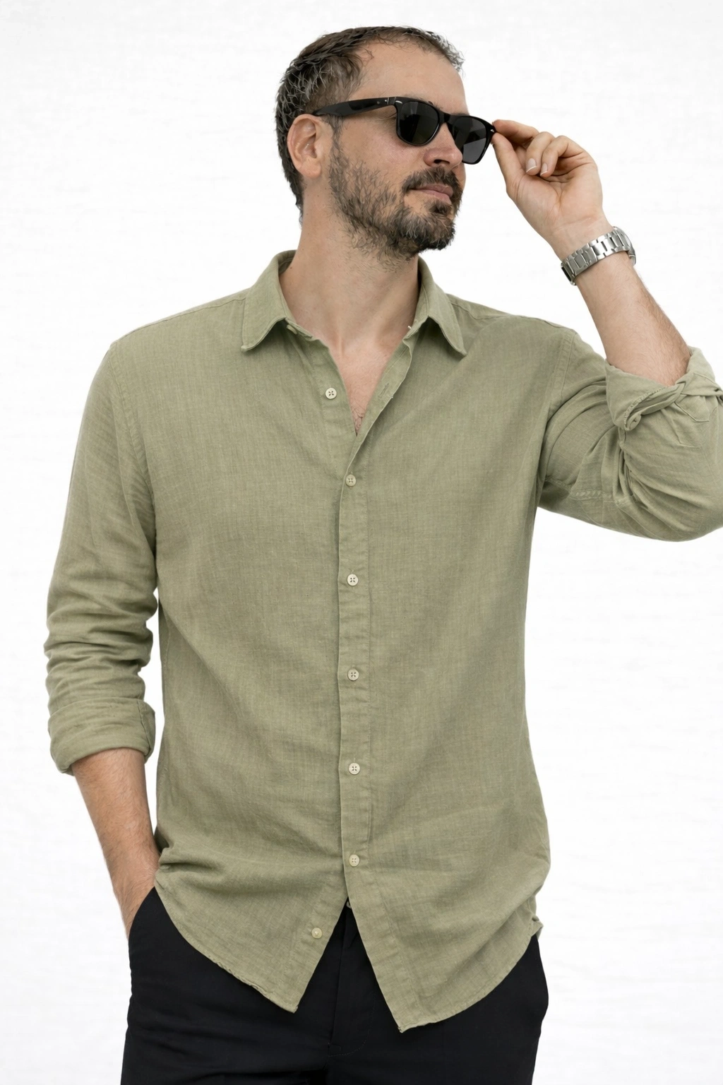 RENK: Haki KUMAŞ: Müslin Keten BEDEN: S-M-L-XL-2XL KALIP: Rahat Kalıp