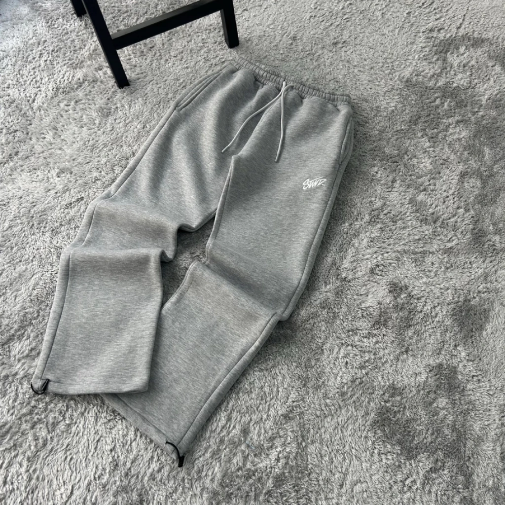 Karmelanj Gri Stwd Premium Nakış Logo Detaylı Baggy Fit Eşofman Altı
