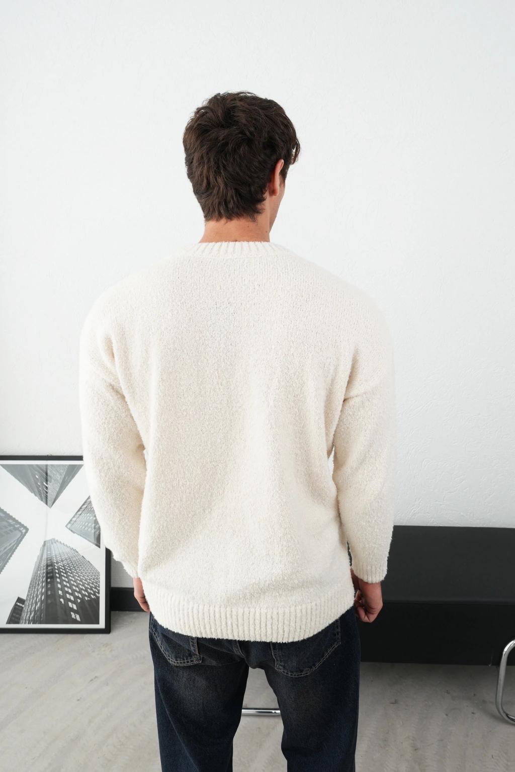 Beyaz Bisiklet Yaka Premium Pamuklu Triko Kazak