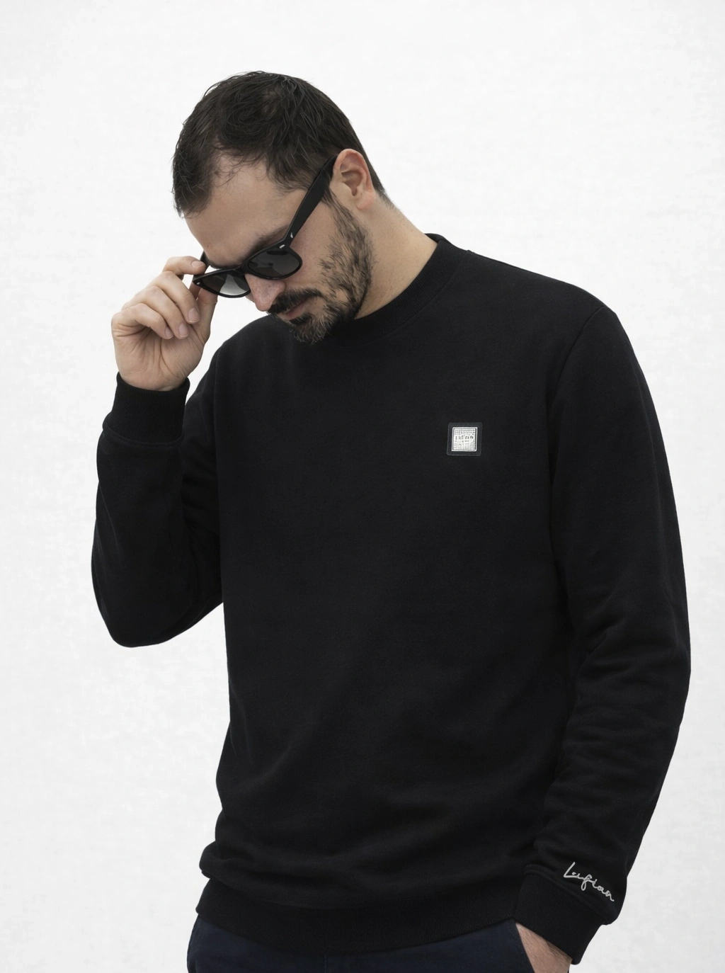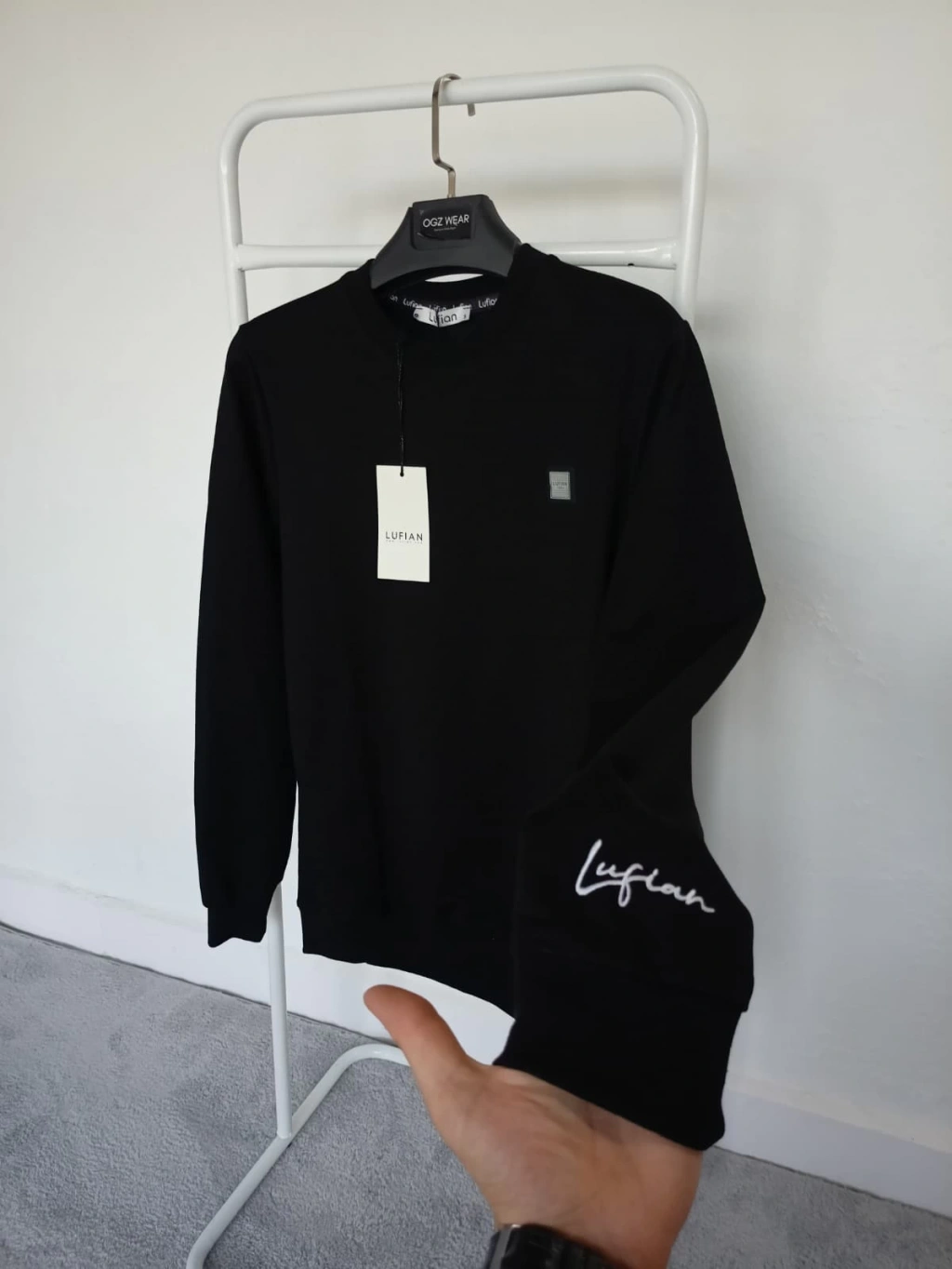 Lfn Siyah Premium %100 Pamuklu Kumaş Uzun Kollu Sweat