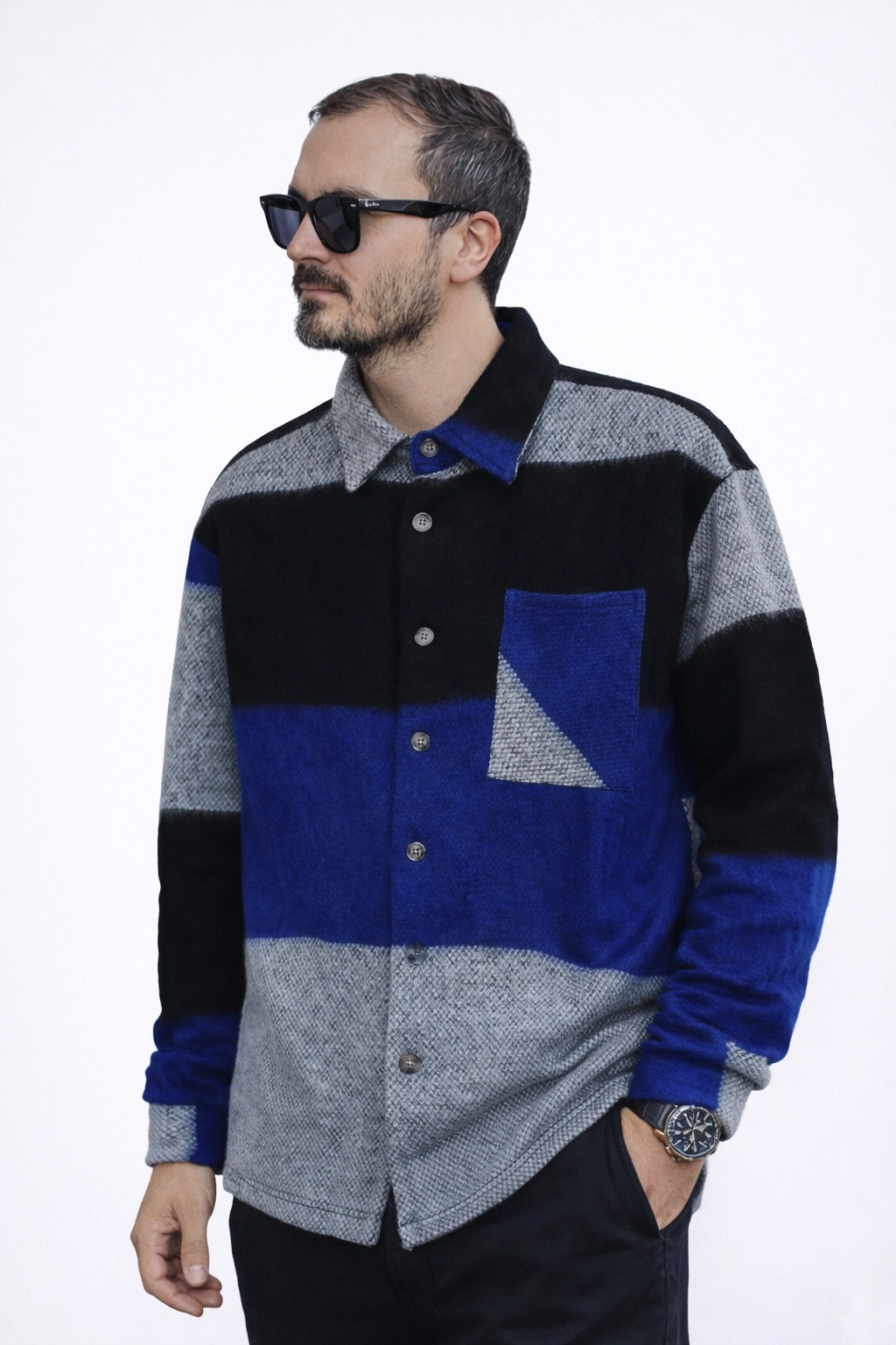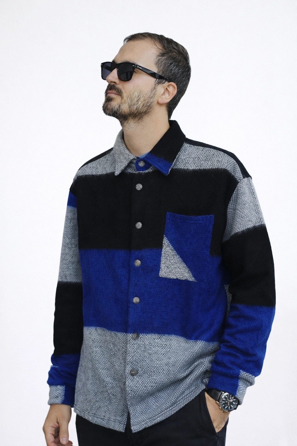 Mavi Gri Siyah Marrakech %100 Pamuklu Premium Oduncu Gömlek