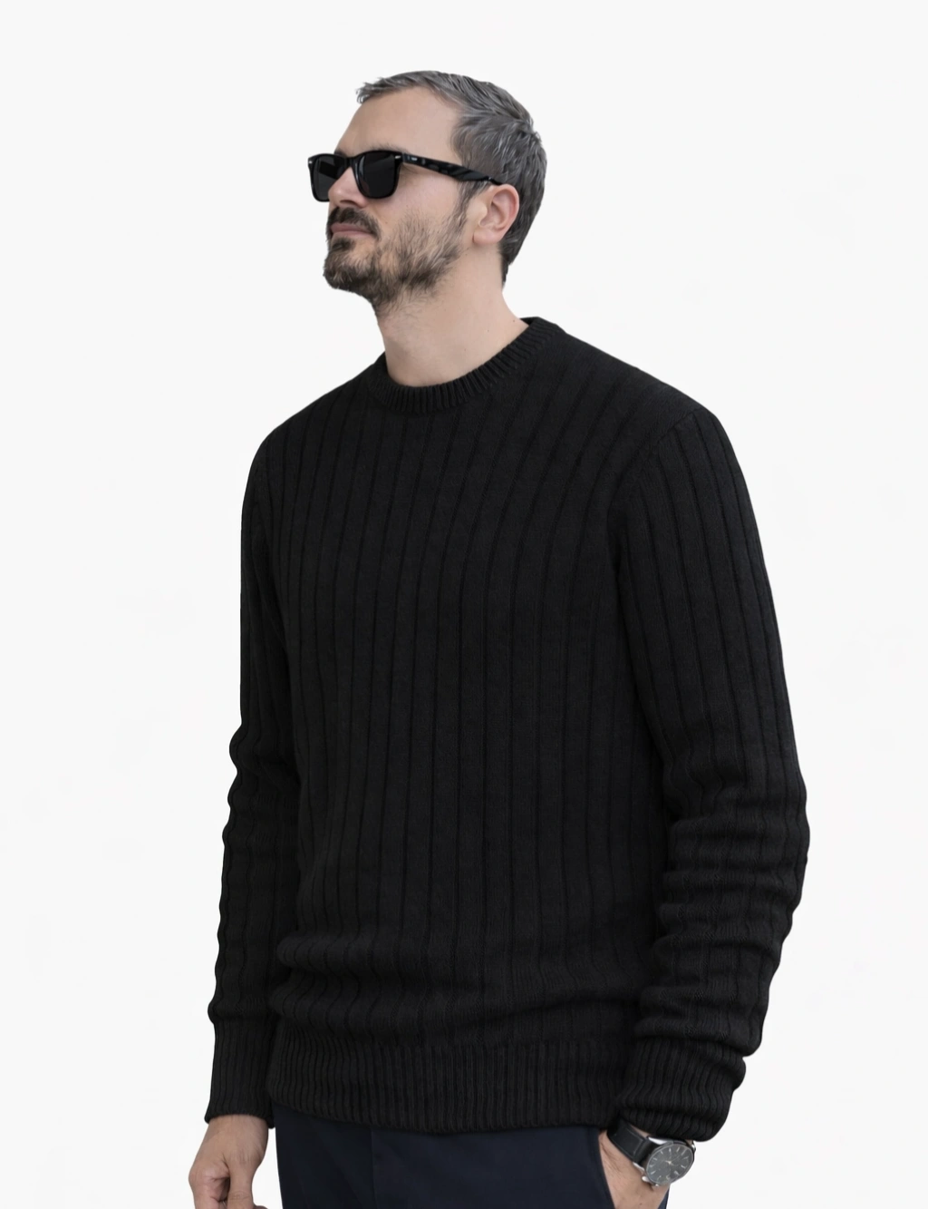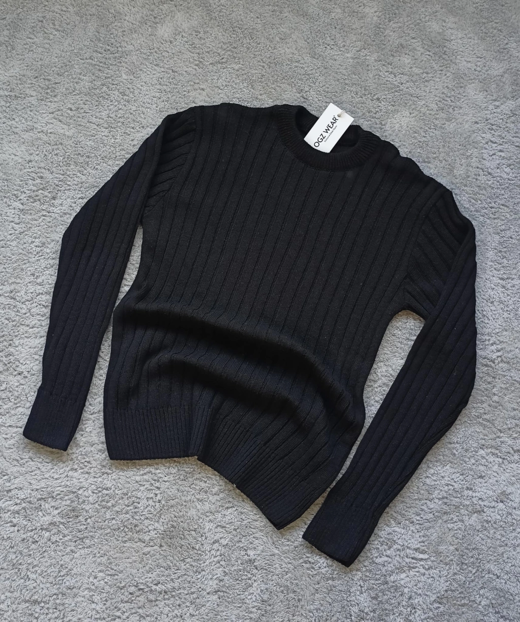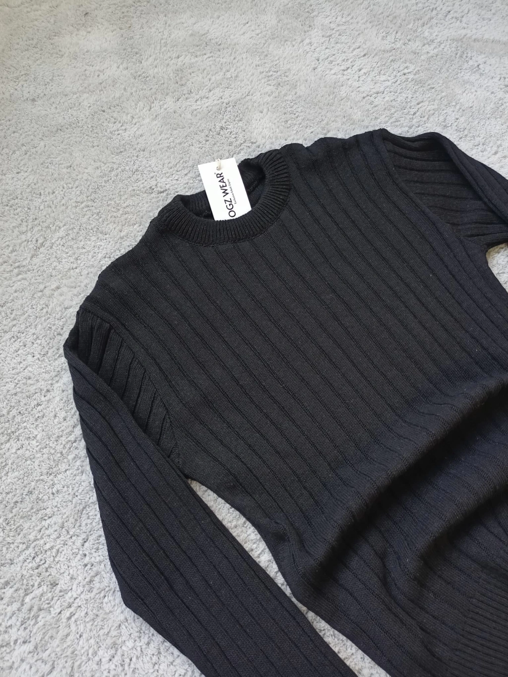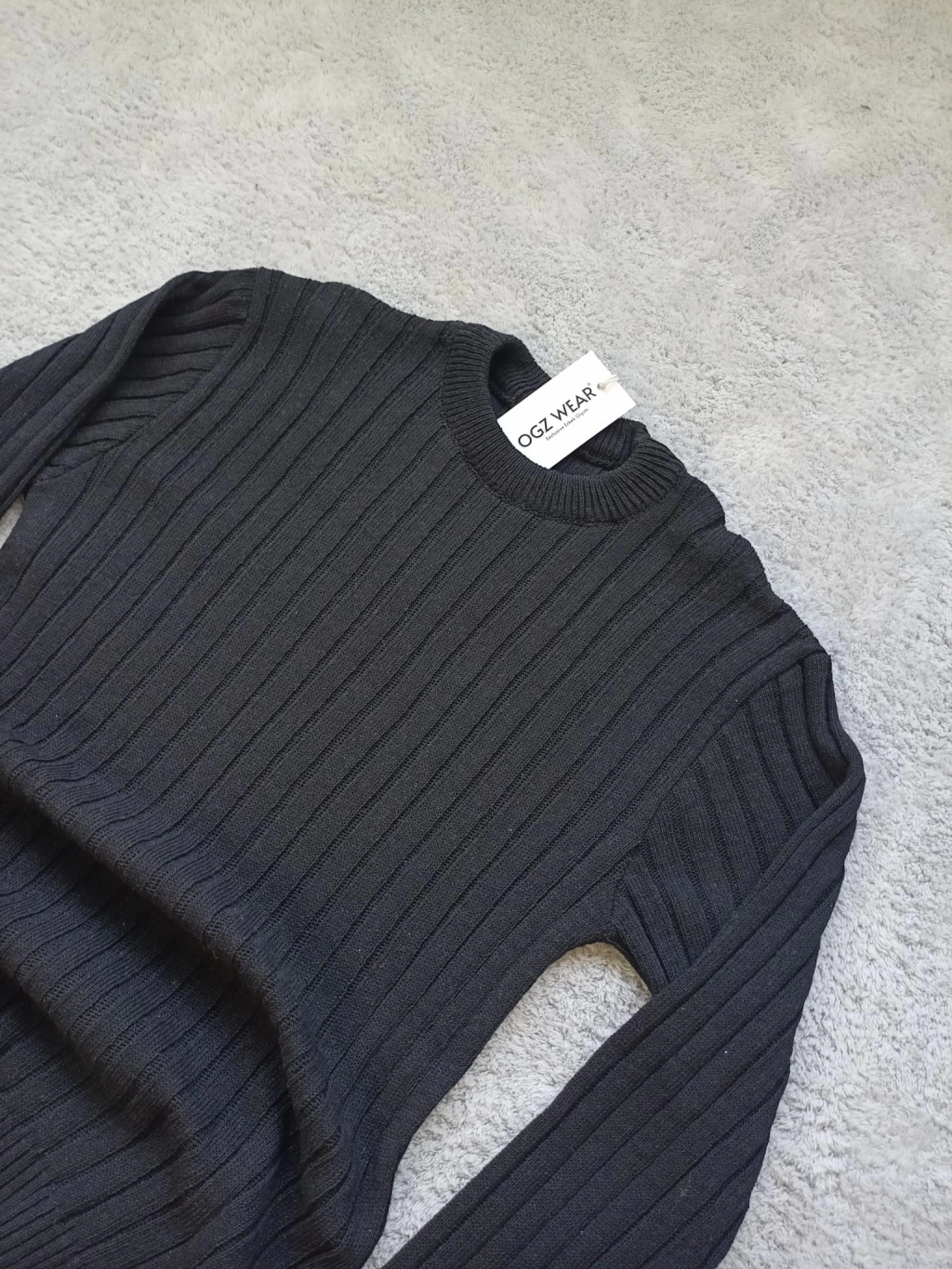 Siyah Bisiklet Yaka Premium Pamuklu Triko Kazak