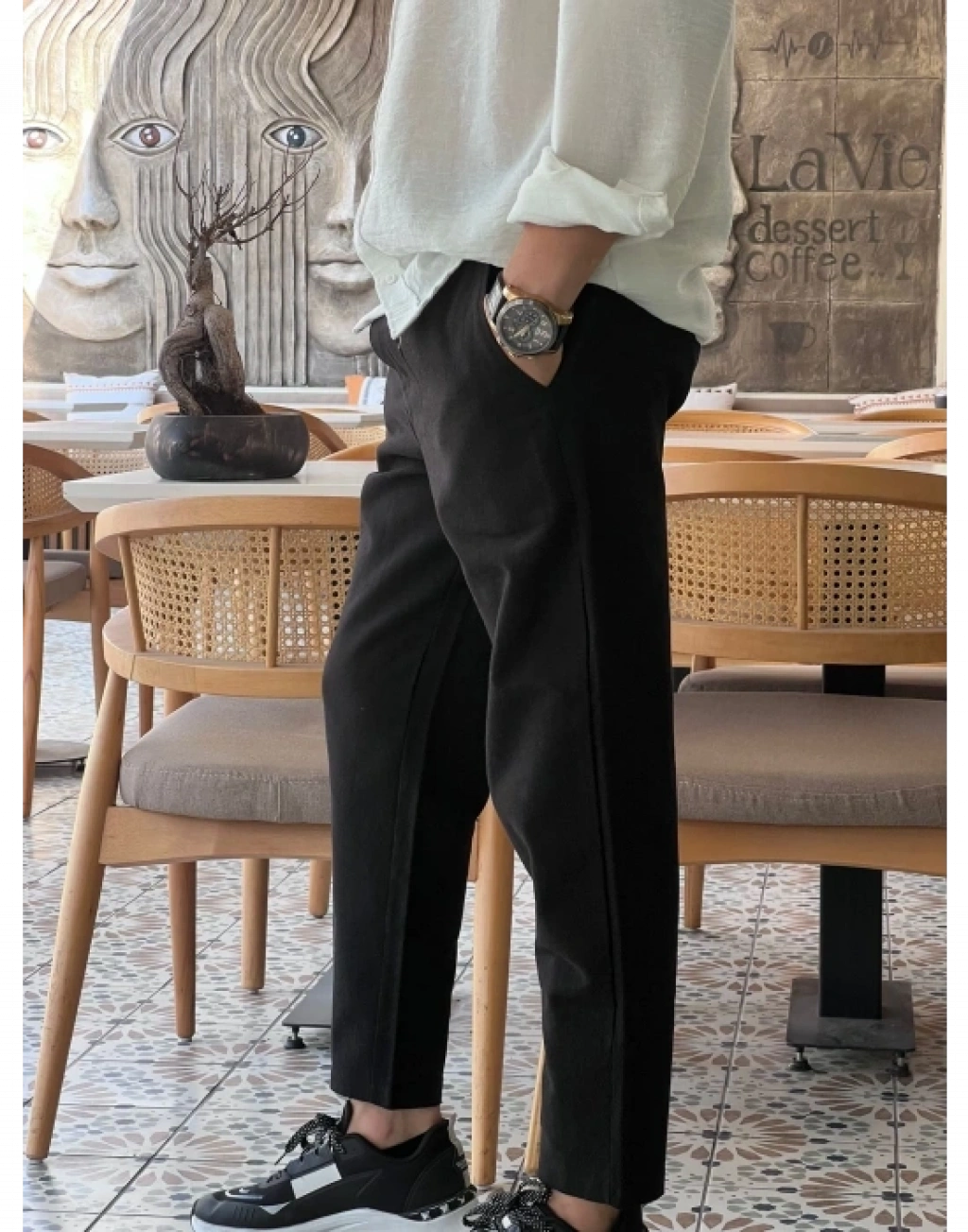 Siyah Ham Keten Premium Kumaş Boyfriend Kalıp Pantolon