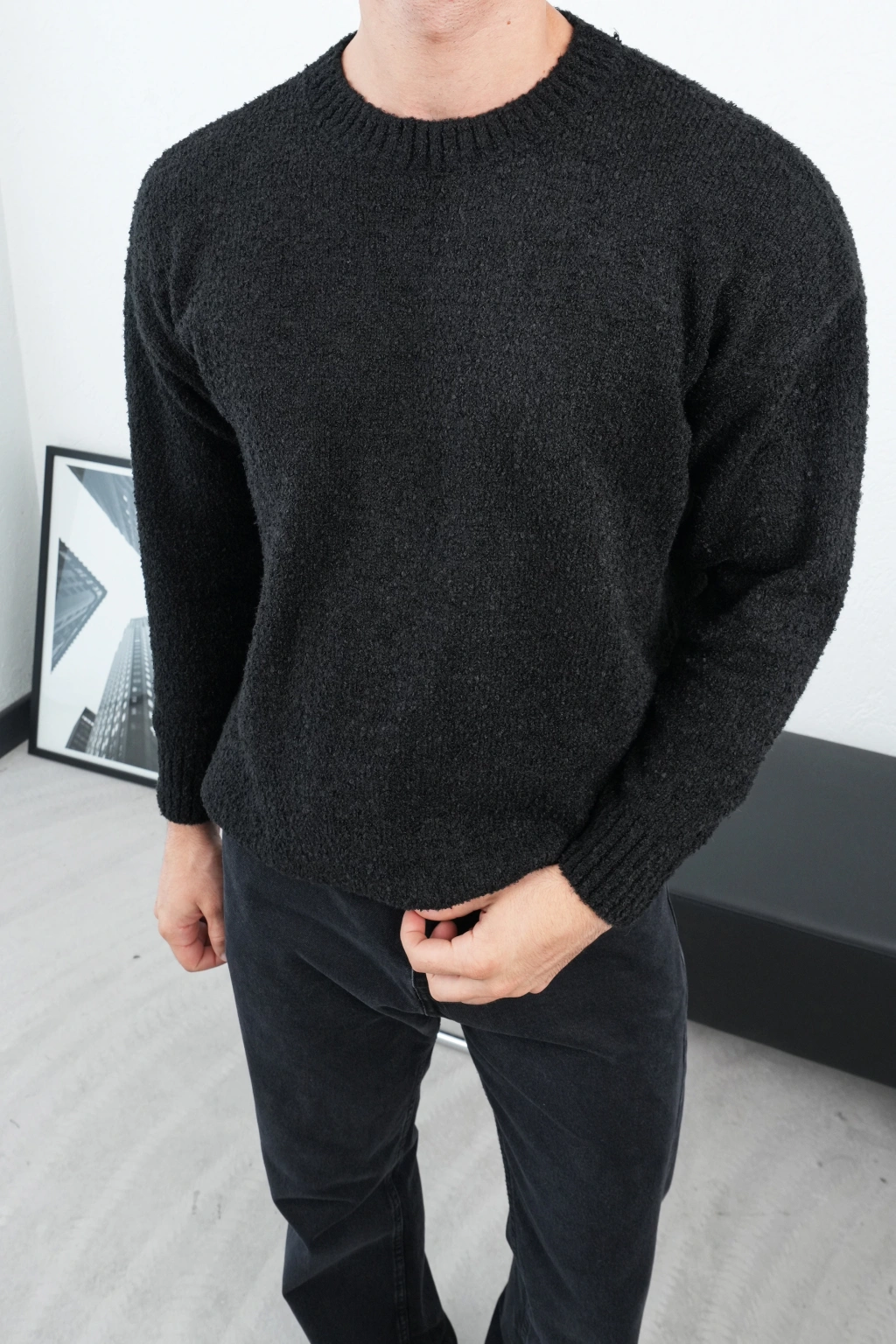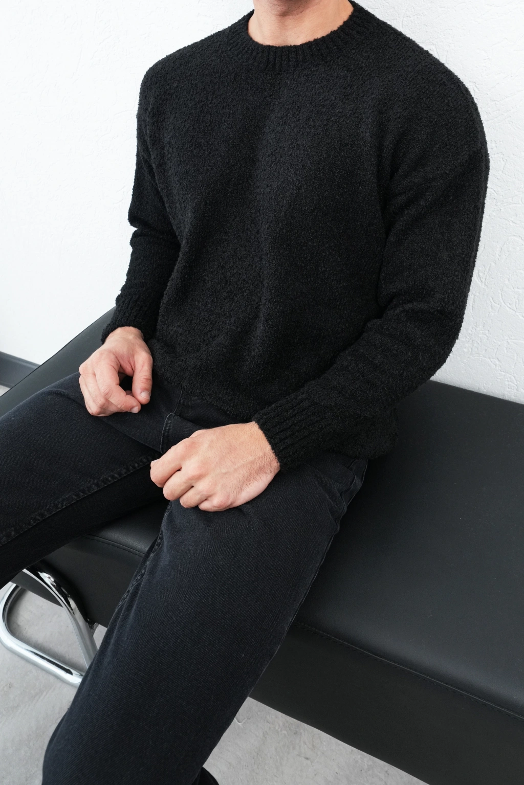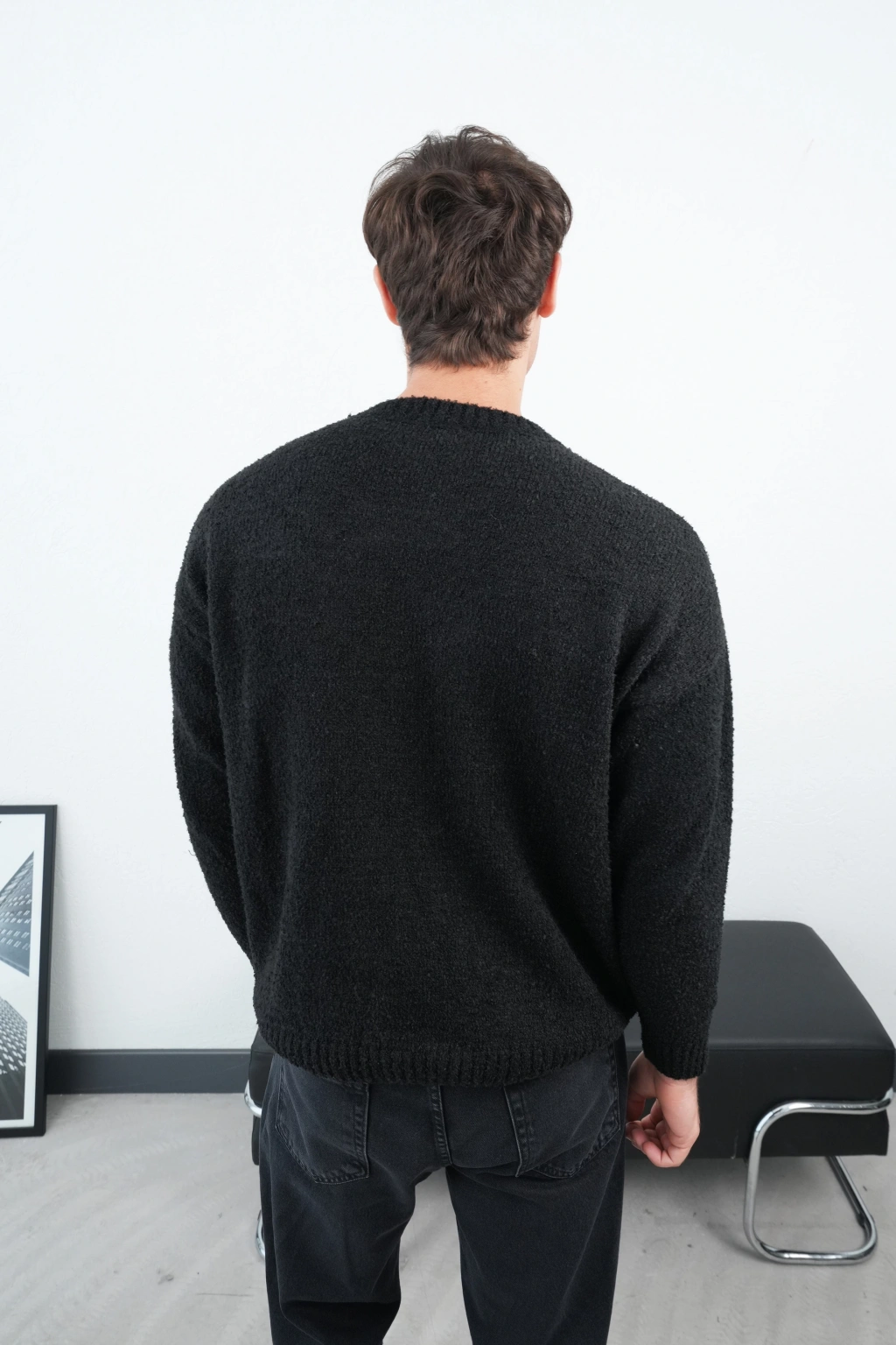 Siyah Bisiklet Yaka Premium Pamuklu Triko Kazak