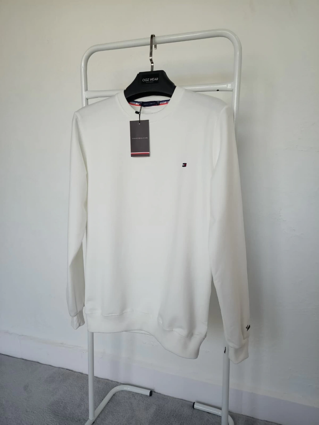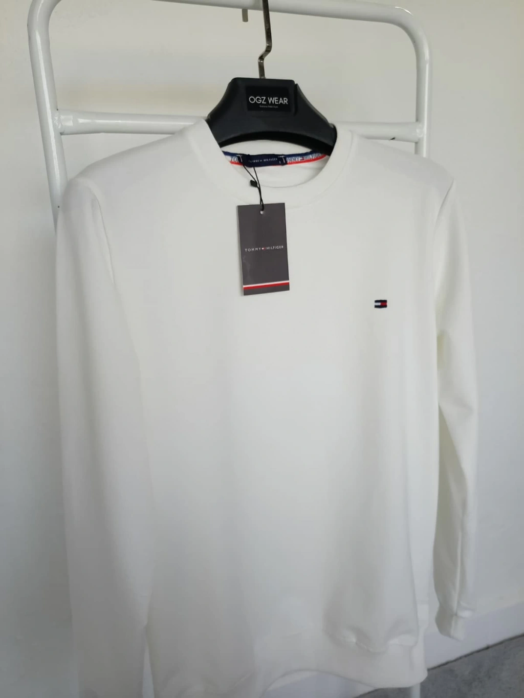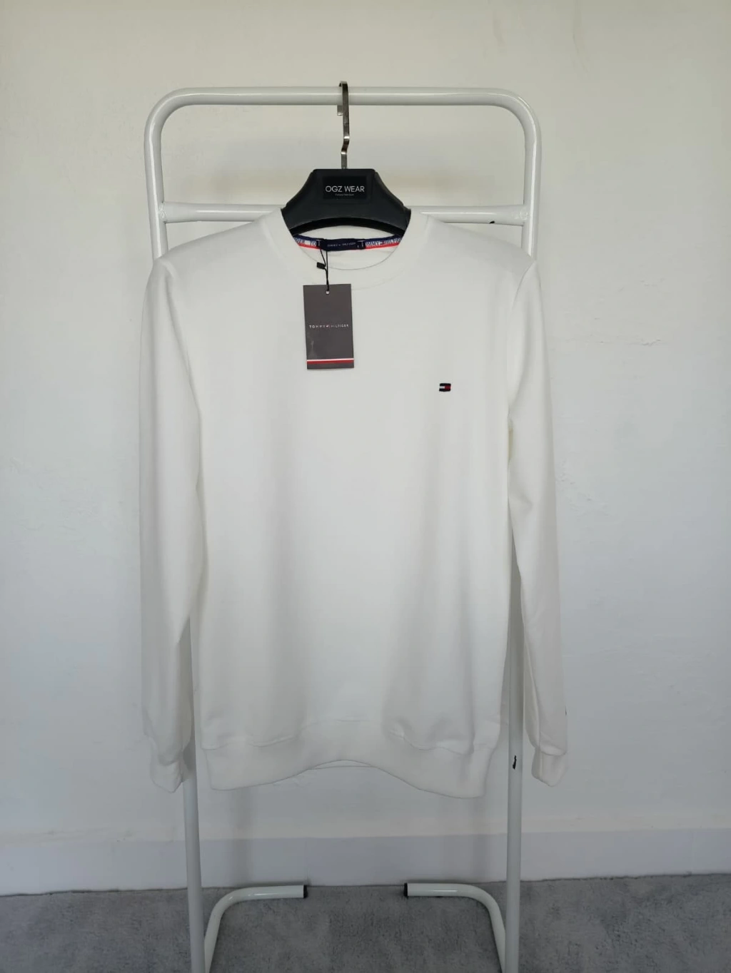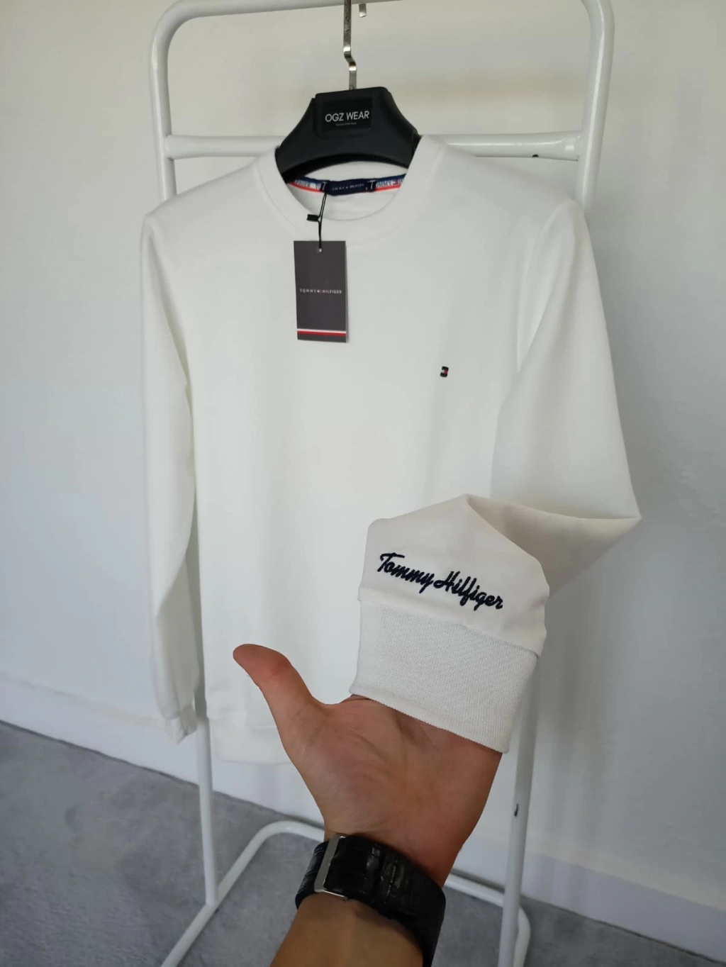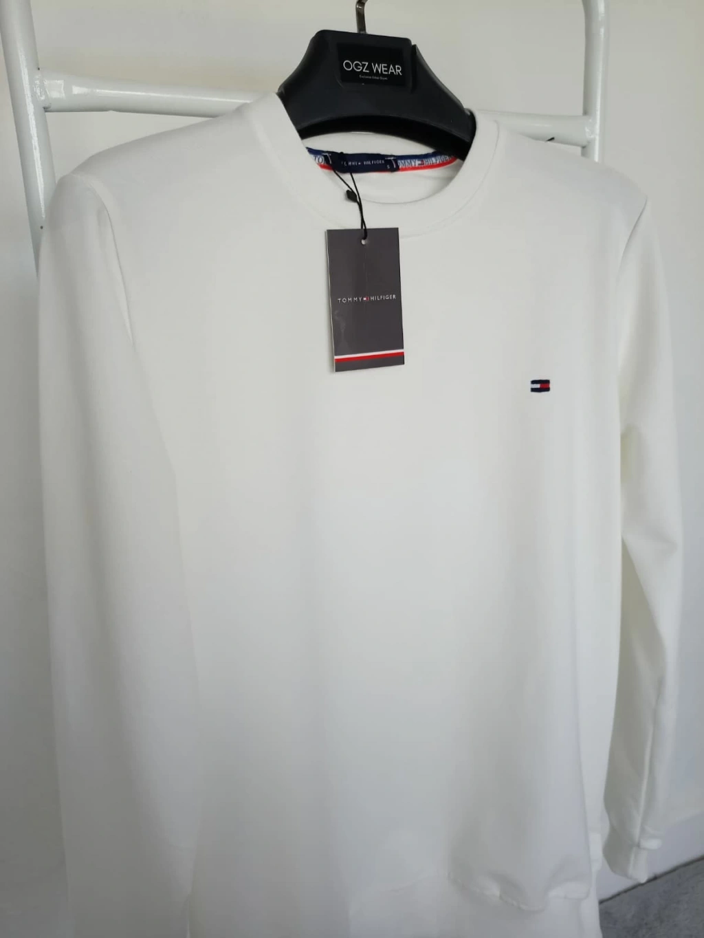 T.Hilfiger Beyaz Küçük Nakış Logo Detaylı Premium %100 Pamuklu Kumaş Uzun Kollu Sweat